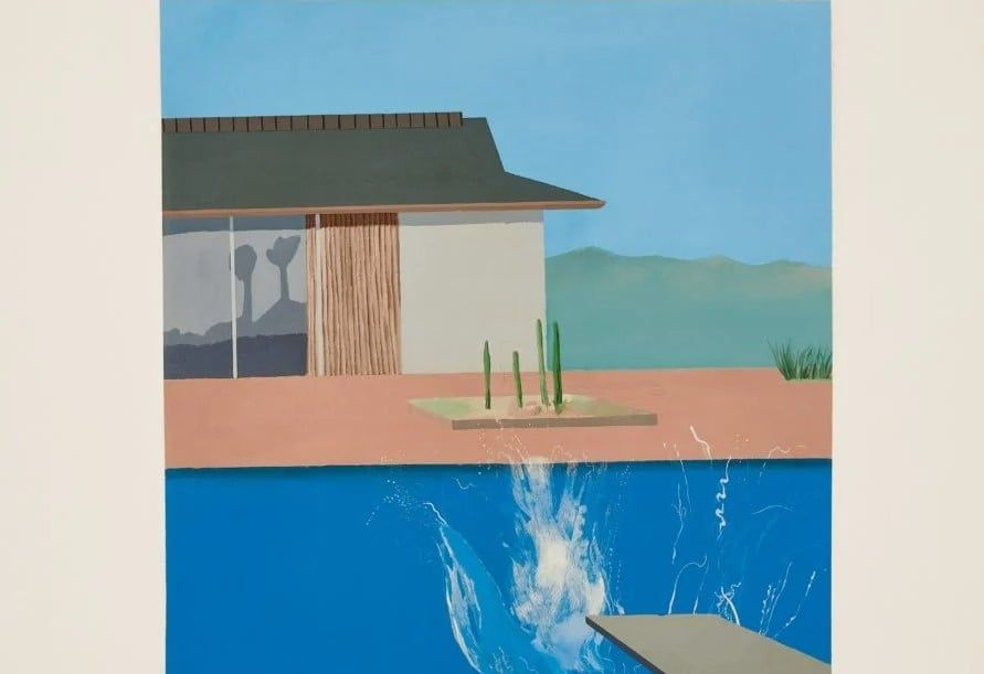 تُعرف اللوحة الأغلى قيمةً في القائمة، والتي امتلكها ديفيد جيفن لفترة وجيزة في ثمانينيات القرن الماضي، بتجسيدها المتناقض لهدوء جنوب كاليفورنيا الفريد، المستمد من الحياة في بيئات معمارية ساحرة بُنيت بعد الحرب، رسم هوكني هذا المشهد عام 1972، متأثرًا بالفن الإيروتيكي المثلي وأشكال أخرى من التصوير الفوتوغرافي واللوحات المُعدّة مسبقًا.
