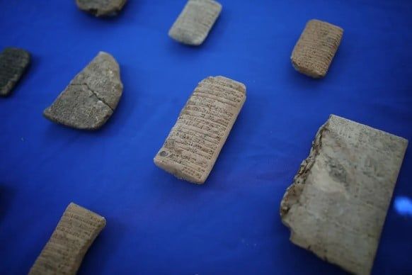 عُرضت قطع أثرية قديمة، هُرّبت إلى الولايات المتحدة في انتهاك للقانون الفيدرالي وشُحنت إلى متاجر هوبي لوبي، في فعالية لإعادة هذه القطع الأثرية إلى العراق في 2 مايو 2018 في واشنطن العاصمة.