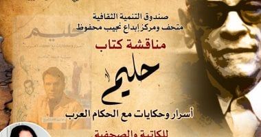 فى إطار برنامج الأنشطة الثقافية والفكرية، ينظم متحف نجيب محفوظ، التابع لقطاع صندوق التنمية الثقافية، ندوة لمناقشة كتاب "حليم.. أسرار وحكايات مع حكام العرب" للكاتبة والصحفية سمية عبد المنعم، وذلك في السادسة من مساء اليوم السبت بمقر المتحف في تكية محمد أبو الدهب.