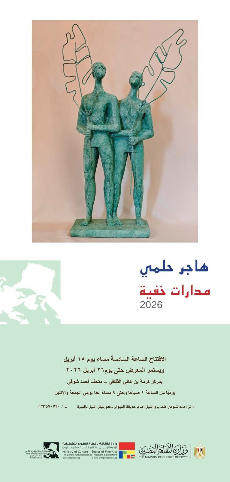 ينظم قطاع الفنون التشكيليّة افتتاح معرض الفنانة هاجر حلمي بعنوان "مدارات خفية"، يوم الأربعاء 15 أبريل 2026 في تمام الساعة السادسة مساءً، بمقر مركز كرمة بن هانئ الثقافي، على أن يستقبل المعرض زواره يوميًا من التاسعة صباحًا وحتى التاسعة مساءً، عدا يومي الجمعة والاثنين، في إطار خطة القطاع لدعم الفنانين وإتاحة تجارب تشكيلية متنوعة للجمهور.