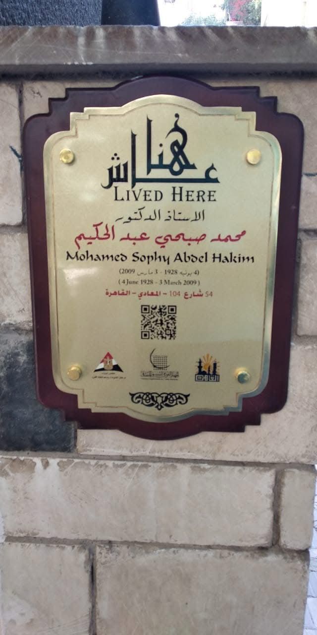 وجاءت اللافتة في 45 شارع 104 بمنطقة المعادي، تخليدًا لمسيرته العلمية الحافلة وإسهاماته البارزة في مجال الجغرافيا.