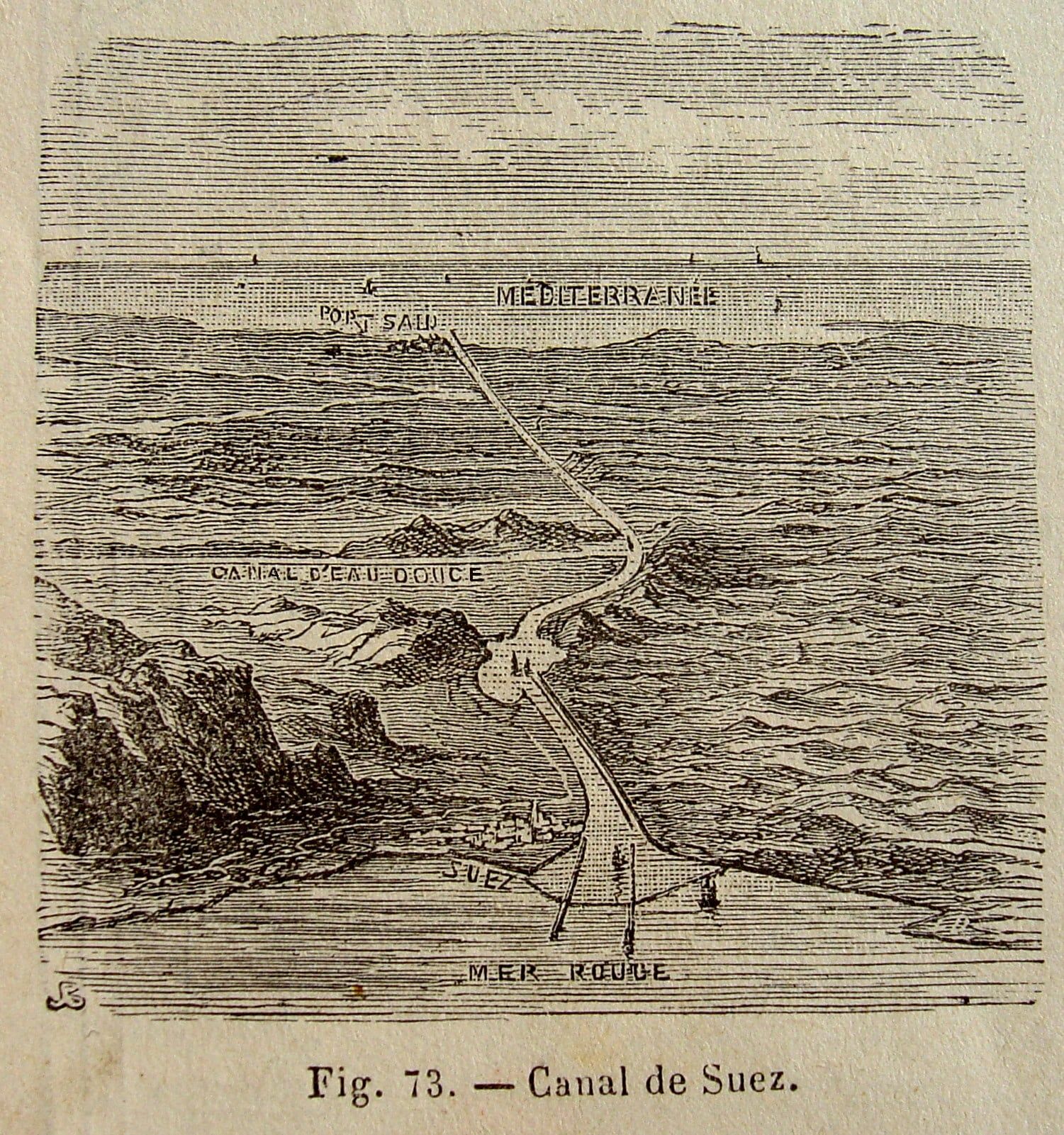 رسم قديم يظهرمسارالقناة من جهة السويس