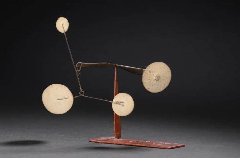 ابتكر كالدير هذا المجسم المعدني المتحرك الذي يبلغ ارتفاعه خمسة بوصات ونصف قبل عامين فقط من وفاته عام 1976، وبعد 43 عامًا من صنعه أول مجسم ميكانيكي متحرك له، وبعد عدة سنوات من هذه التجربة الأولى، استبدل كالدير المحركات بالطاقة الحركية، تاركًا الرياح واللمسات الخفيفة من المشاهدين تُحرك أعماله الفنية.