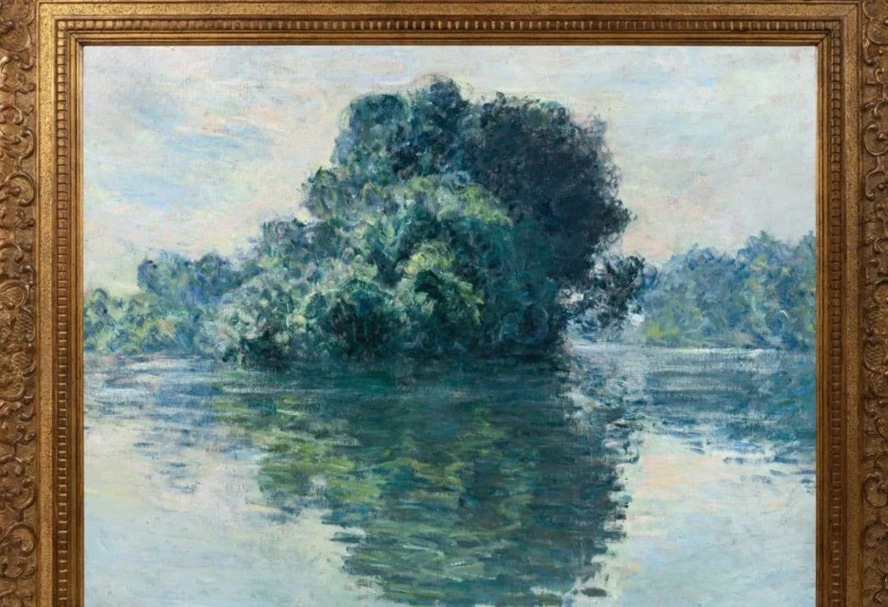 اللوحة، التي لم تكن معروفة سوى من خلال صورة بالأبيض والأسود منذ خمسينيات القرن الماضي، تكشف عن ضربات فرشاة سريعة وحيوية تُبرز انعكاس الجزيرة على المياه، فيما تبدو السماء الضبابية وكأنها إضافة لاحقة. ويرى توماس بومبارد، الرئيس المشارك لقسم الفن الحديث والمعاصر في سوذبيز، أن هذه التجربة المبكرة تنبئ بانشغال مونيه لاحقًا بزنابق الماء.
