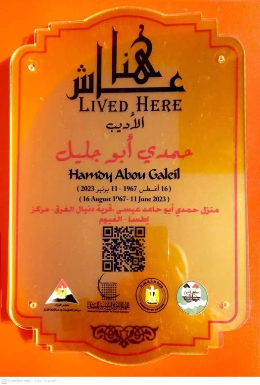 وثقت مبادرة "عاش هنا" وضع لوحة تذكارية تحمل اسم الأديب الراحل حمدي أبو جليل على واجهة المنزل الذي عاش فيه بمحافظة الفيوم، ضمن مشروع ثقافي يستهدف تحويل "المكان" إلى جزء من الذاكرة العامة، عبر التعريف برموز الإبداع المصري في الشوارع والأحياء، وإتاحة معلومات موثقة عن سيرهم ومسيرتهم للجمهور.