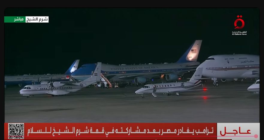 غادر الآن، الرئيس الأمريكي دونالد ترامب، أرض مصر، بعد مشاركته في فعاليات قمة شرم الشيخ للسلام، حسبما جاء في عاجل لقناة القاهرة الإخبارية.