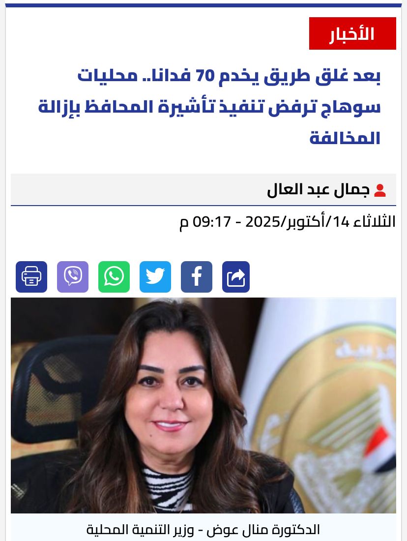 وفيما يخص الحالة المشار إليها في الخبر المنشور بموقع "البوابة نيوز" بعنوان "بعد غلق طريق يخدم 70 فدانا.. محليات سوهاج ترفض تنفيذ تأشيرة المحافظ بإزالة المخالفة"، أوضح مدير إدارة خدمة المواطنين، أنه تم استقبال المواطن المذكور شخصيًا، ومرافقته حتى قاعة اللقاء الجماهيري، وبعد مراجعة أوراقه تبيّن وجود تأشيرة سابقة من المحافظ، فتم توجيهه إلى متابعة الرد الوارد من الوحدة المحلية المختصة لمعرفة الموقف القانوني وما تم من إجراءات، تمهيدًا لإعادة العرض مجددًا أمام المحافظ في حال وجود تقصير أو تقاعس.