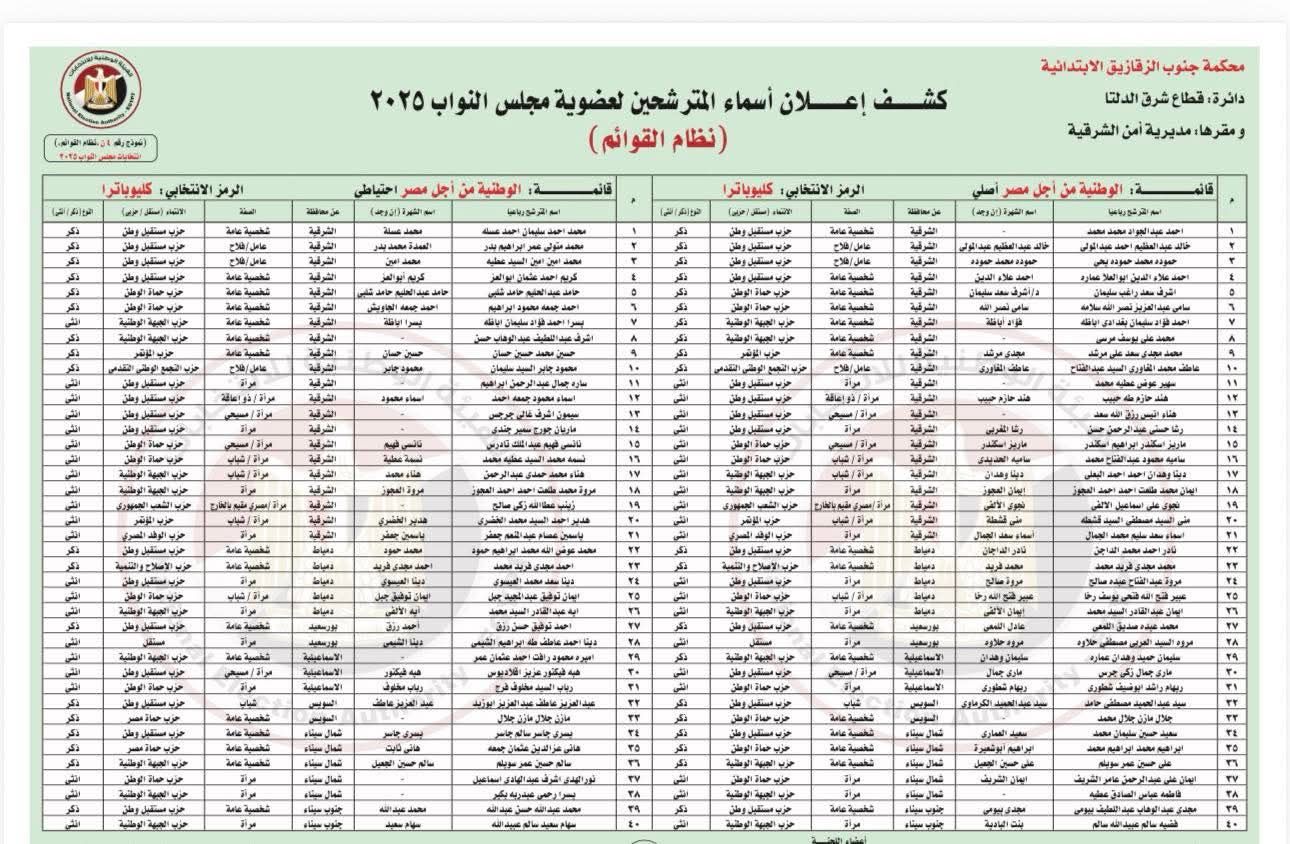 وتضمن الكشفان أسماء المترشحين والصفة التي ثبتت لكل منهم، وحدد الكشف الثاني اسم القائمة التي ينتمي إليها المترشح، على أن يستمر عرض الكشفين على مدى أيام 16 و17 و18 أكتوبر، وتنشرهما الهيئة الوطنية للانتخابات في جريدتي الأخبار والجمهورية.