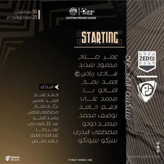 أعلن الجهاز الفني لفريق بتروجيت التشكيل الأساسي الذي سيخوض به مواجهة زد، المقرر إقامتها مساء اليوم ضمن منافسات بطولة الدوري المصري الممتاز "دوري نايل".
