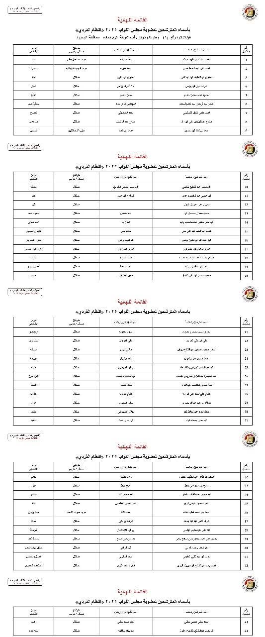 جاءت كشوف مرشحي النظام الفردي في محافظة البحيرة كالآتي: