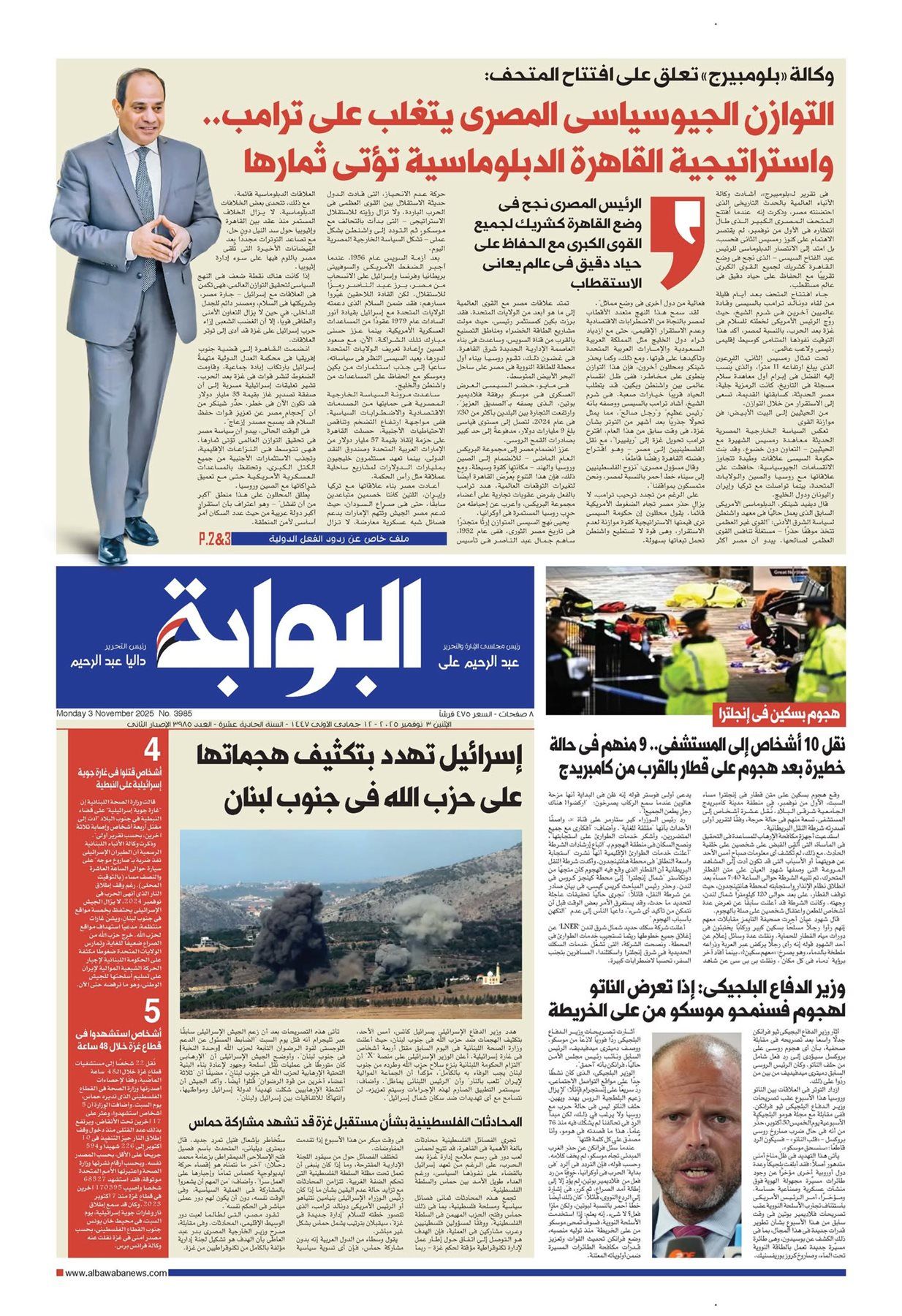 تقرأ غدًا في العدد الجديد من جريدة «البوابة»، الصادر بتاريخ الأثنين 3 نوفمبر 2025، مجموعة من الموضوعات والانفرادات المهمة، ومنها: