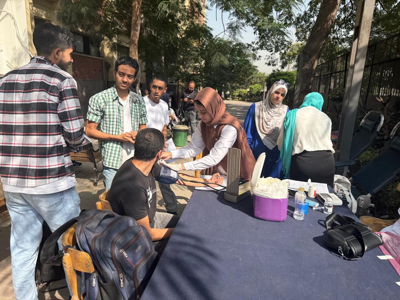 نظمت كلية الآداب بجامعة عين شمس، اليوم قافلة طبية للتبرع بالدم.
