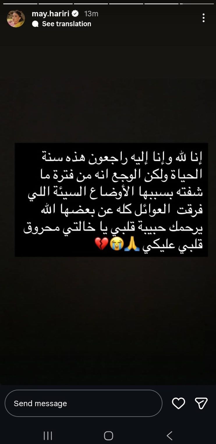 الرئيسية أخبار العالم مصر لبنان24 منذ 3 ساعات — الجمعة — 7 / نوفمبر / 2025 بالصورة... الموت يُؤلم فنانة لبنانيّة بارزة: "محروق قلبي" لبنان24 منذ 3 ساعات 0 تعليق ارسل طباعة تبليغ حذف بالصورة... الموت يُؤلم فنانة لبنانيّة بارزة: "محروق قلبي" إنشر على الفيسبوك إنشر على تويتر أعلنت الفنانة ميّ حريري عبر خاصية "ستوري" عبر حسابها على "انستغرام"، عن وفاة خالتها. Advertisement وقالت حريري: "إنا لله وإنا إليه راجعون هذه سنة الحياة. الله يرحمك حبيبة قلبي يا خالتي محروق قلبي عليكي". إخترنا لك قرض قاتل.. تفاصيل مقتل شاب وتشويه جثمانه بدمياط السابق وزارة الشباب تختتم النُسخة الأولى من ملتقى "أخلاقي.. عنواني" في الغردقة التالى وول ستريت جورنال: الجيش الإسرائيلي يبدأ بتقليص عدد جنود الاحتياط العاملين في غزة ومناطق أخرى أخبار ذات صلة تحرك سياسي لافت والعين على "المحافظ"أخبار العالممنذ 8 دقائق هذا ما كشفته التحقيقات الامنية عن "الحملة"أخبار العالممنذ 28 دقيقة رسالة ضغط على الحكومة أم على "حزب الله"؟أخبار العالممنذ 38 دقيقة الموت يؤلم محمد رمضان.. فقد أعز الناس (صورة)مصرمنذ 58 دقيقة رئيس الجمهورية بعد العدوان الإسرائيلي امس:"وصلت رسالتكم".. ملف اقتراع المغتربين مجددا الى البرلمانأخبار العالممنذ 58 دقيقة دخل في غيبوبة وأصيب بكسر في الجمجمة.. فنان شهير يتعرّض لحادث سير مروع (فيديو)مصرمنذ ساعة واحدة 0 تعليق Facebook