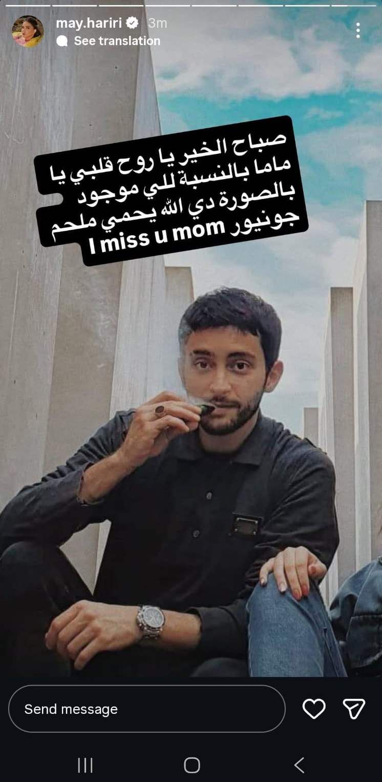 نشرت الفنانة ميّ حريري، صورة عبر خاصية "ستوري" عبر حسابها على "انستغرام"، لابنها ملحم جونيور، نجل الفنان الراحل ملحم بركات.