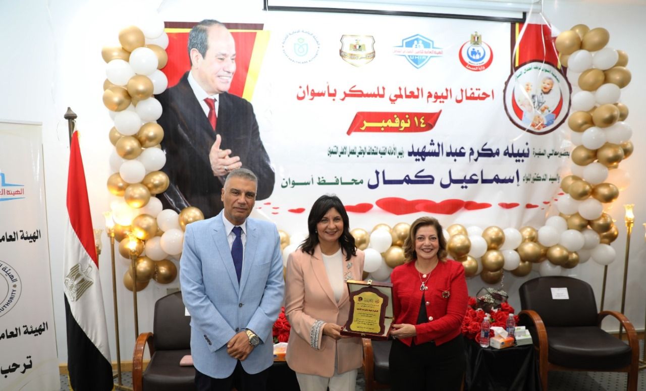 شهد اللواء دكتور إسماعيل كمال محافظ أسوان فعاليات الإحتفال باليوم العالمى لمرضى السكرى ، والذى نظمته جمعية أسوان لرعاية أطفال السكر بالمركز الثقافى الإفريقى ( متحف النيل الوثائقى سابقاً ) ، بحضور السفيرة نبيلة مكرم المدير التنفيذى للتحالف الوطنى للعمل الأهلى التنموى ، والدكتورة بهجة البدرى رئيس الجمعية ، والمهندسة إيرين فايز مدير عام المركز ، فضلاً عن القيادات البرلمانية والتنفيذية والمجتمعية .
