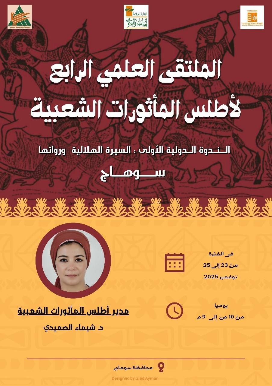 يشهد مركز أطلس المأثورات الشعبية استمرار نشاطه العلمي بإطلاق فعاليات الملتقى الرابع تحت شعار "السيرة الهلالية ورواتها"، بحضور باحثين وخبراء من مصر وعدد من الدول العربية، من بينها الإمارات والسودان والجزائر، في خطوة تعكس اتساع الأفق الإقليمي والدولي للأطلس في مجال بحوث الثقافة الشعبية.