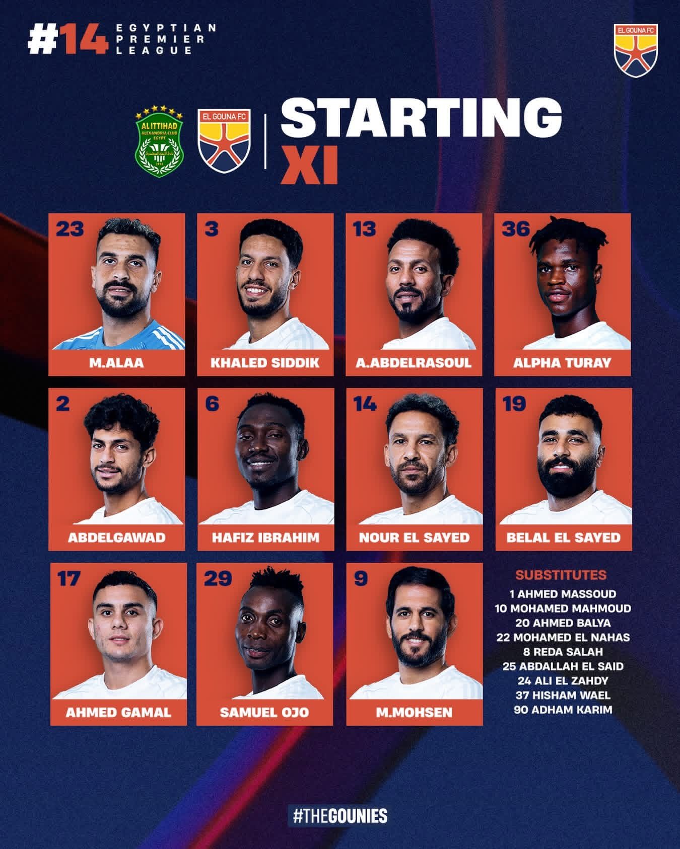 تشكيل الجونة الرسمي لمواجهة الاتحاد السكندري في الدوري المصري