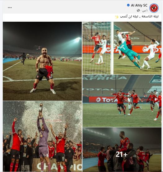 ونشرت الصفحة الرسمية للأهلي على موقع التواصل الإجتماعي "لإيس بوك" صورة من مباراة نهائي القرن وعلقت: ليلة التاسعة .. ليلة لن تُنسى"
