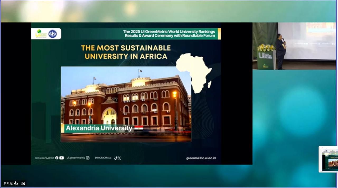كما أشاد فريق تصنيف UI GreenMetric بالتطور الملحوظ الذي حققته جامعة الإسكندرية في مختلف محاور الاستدامة، معتبرين هذا التقدّم نموذجًا ملهمًا للجامعات الأفريقية والعربية.