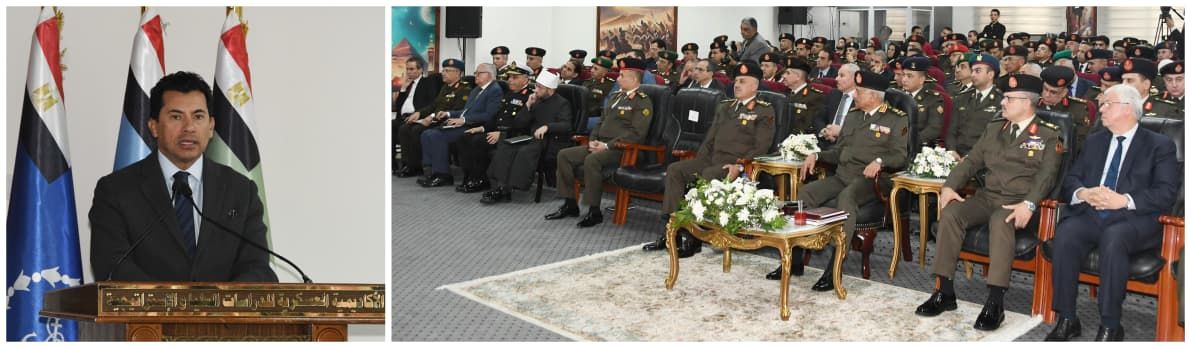 وألقى اللواء أح عاطف عبد الرؤوف محمود مدير الأكاديمية العسكرية للدراسات العليا والاستراتيجية كلمة قدم خلالها الشكر للقيادة العامة للقوات المسلحة على تقديم كافة أوجه الدعم للارتقاء بالمستوى العلمى والبحثى داخل الأكاديمية بما يمكنها من الارتقاء بمستوى الدارسين وفقاً لمنظور علمى متميز، مشيراً إلى أن فعاليات البحث تأتى فى ظل التحديات المتسارعة التى تواجهها المنطقة والتى من شأنها المساس بأمن مصر القومى.