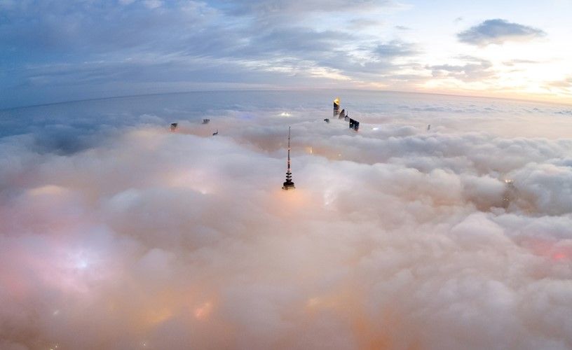 في ساعات الصباح الأولى من فجر اليوم تشكل الضباب الكثيف فوق معظم مدن الكويت، ما أبرز مشاهد فريدة تظهر ناطحات السحاب وهي تعلو فوق الغيوم في مشهد جذب عدسات المصورين لالتقاط لحظات استثنائية، بحسب ما ذكرت جريدة "الأنباء" الكويتية اليوم السبت.