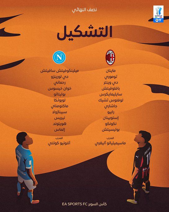 يخوض عملاقان من عمالقة الكرة الأوروبية وخاصة الكرة الإيطالية مباراة هامة في إطار منافسات نصف نهائي كأس السوبر الإيطالي تجمع بين نابولي وميلان.