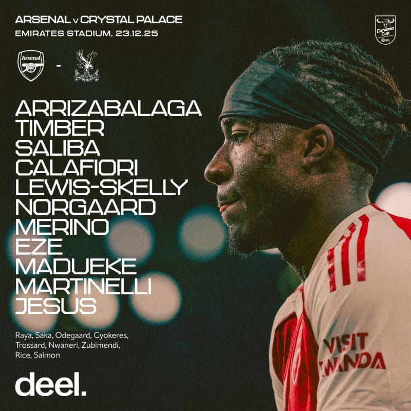 أعلن الإسباني ميكيل أرتيتا، المدير الفني لفريق أرسنال الإنجليزي، التشكيل الرسمي لمواجهة ضيفه كريستال بالاس على ملعب الإمارات، في مباراة قوية لحساب ربع نهائي كأس الرابطة الإنجليزية 2025-26، لتحديد الفريق الرابع المتأهل إلى نصف النهائي.