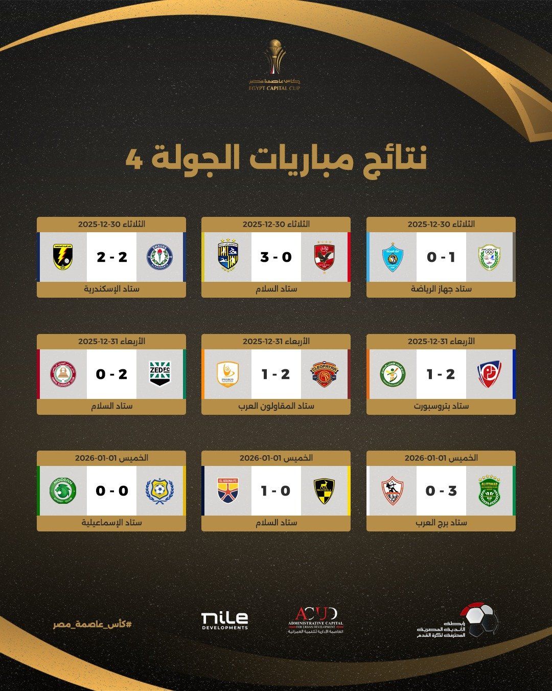 نتائج الجولة الرابعة بكأس عاصمة مصر