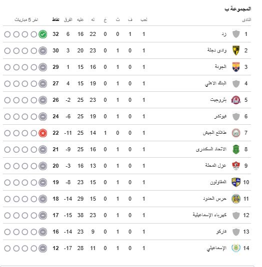 ترتيب مجموعة تفادى الهبوط في الدوري