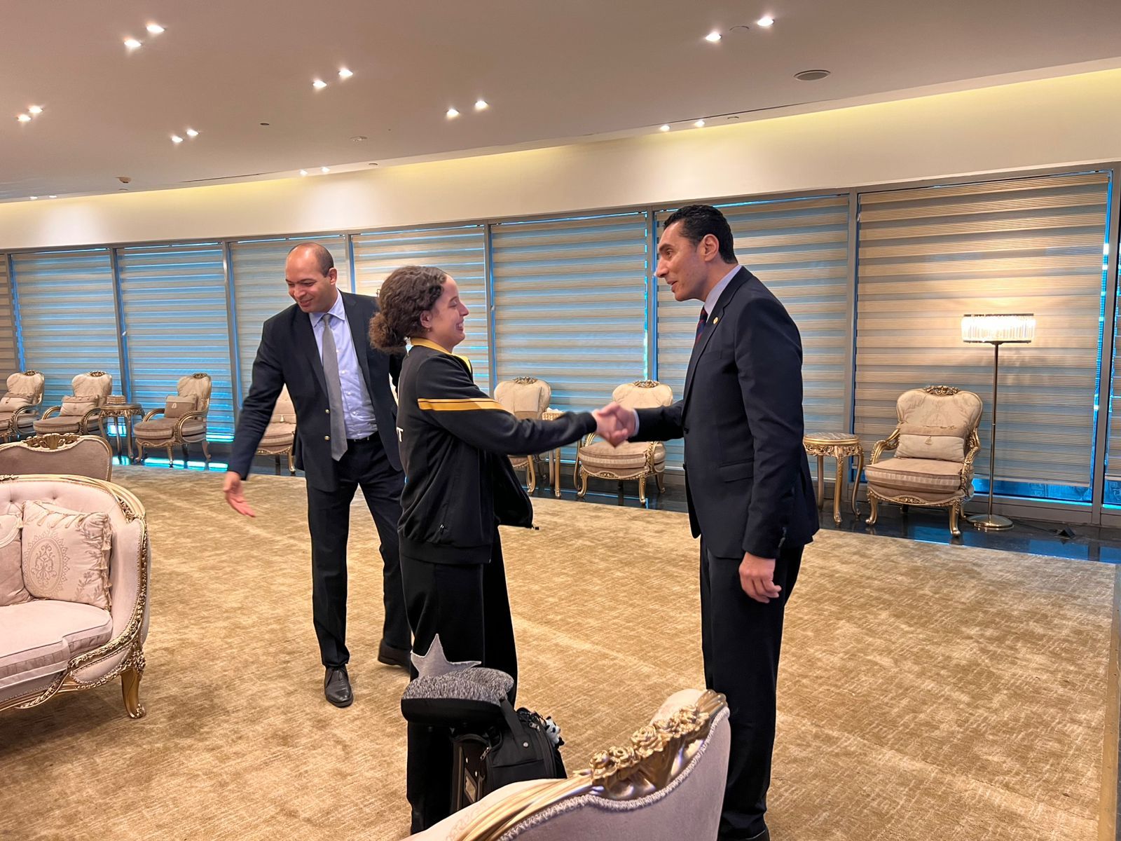 وزير الشباب والرياضة في استقبال هنا جودة بالمطار
