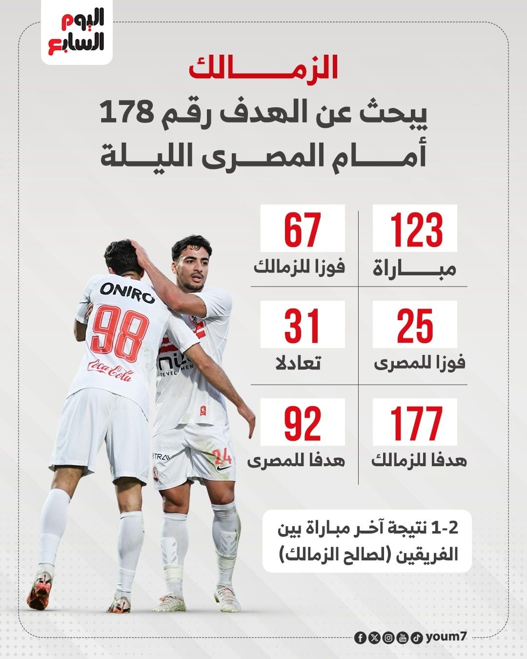 وسجل لاعبو الزمالك 177 هدفا فى شباك المصري، فيما تلقت شباكهم 92 هدفا، فيما تأتي قائمة هدافي تاريخ مواجهات الفريقين، على النحو التالي: