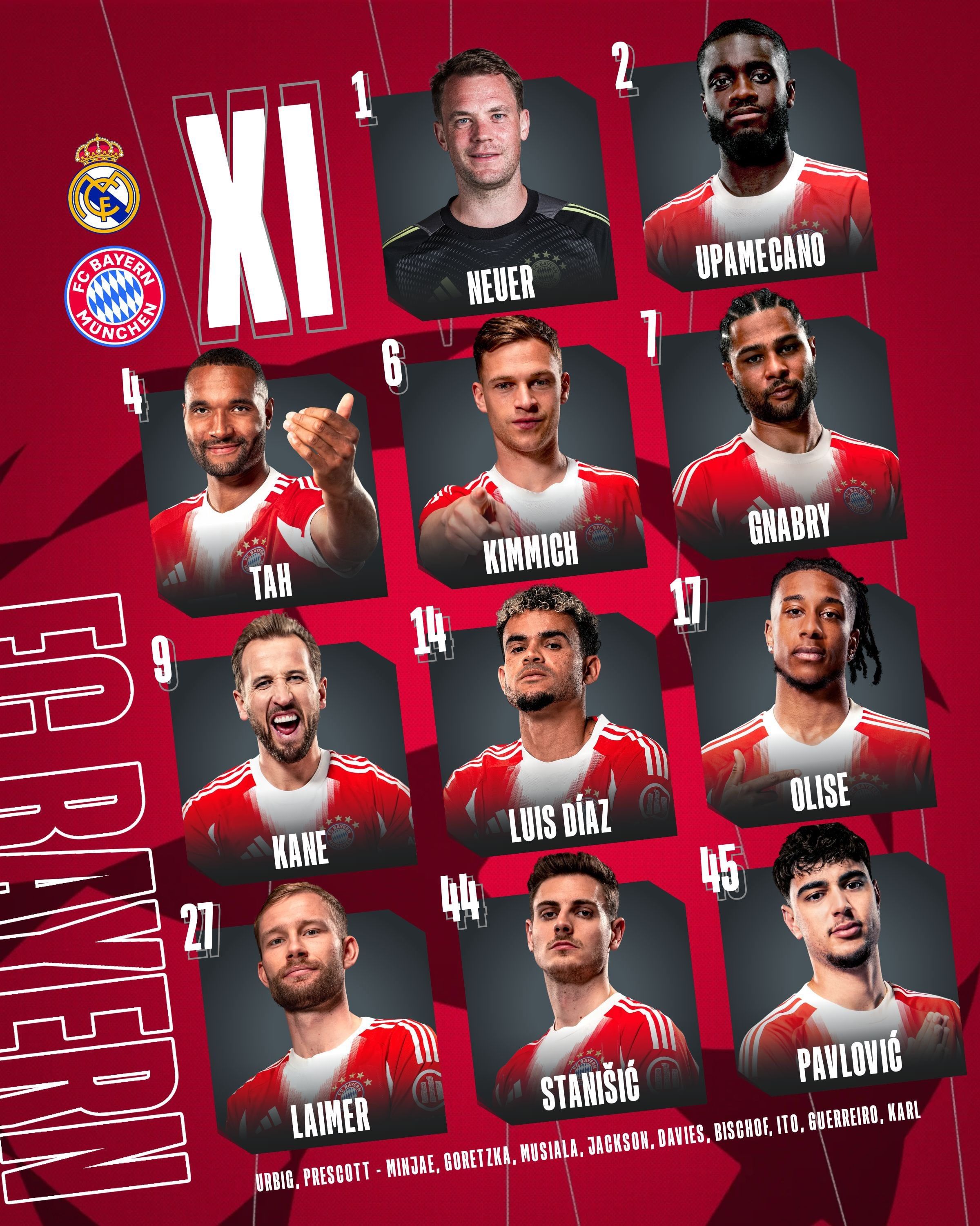 الهجوم: هاري كين، لويس دياز، مايكل أوليس.