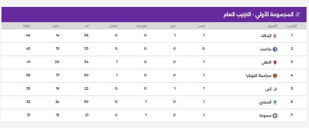 ترتيب الدورى المصرى