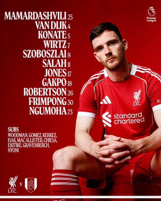 - الدفاع: فان دايك، كوناتي، روبرتسون، وفريمبونج.