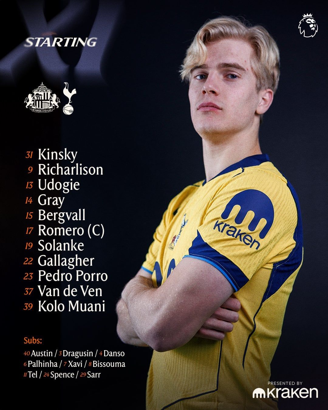 كينسكي في حراسة المرمى، ثم ريتشارليسون، أودوجي، جراي، بيرجفال، روميرو، سولانكي، جالاجر، بيدرو بورو، فان دي فين، كولو مواني.