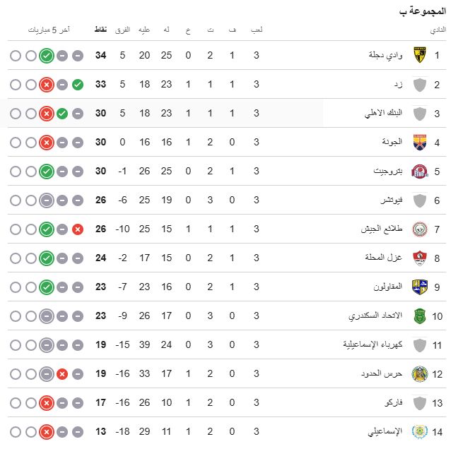 جاء ترتيب مجموعة الهبوط عقب خوض 3 جولات كالتالي: