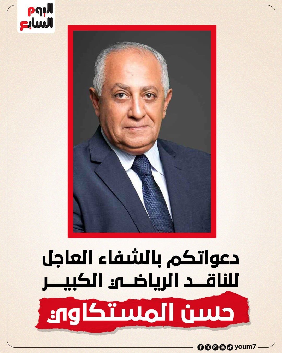 وأعرب الإعلامي أحمد شوبير عن دعمه للمستكاوي، حيث نشر عبر حسابه على موقع "فيسبوك" رسالة تمنى فيها له الشفاء العاجل، مشيرًا إلى مروره بأزمة صحية حادة تطلبت تدخلاً جراحيًا سريعًا، داعيًا الجميع إلى الدعاء له لتجاوز هذه المحنة.