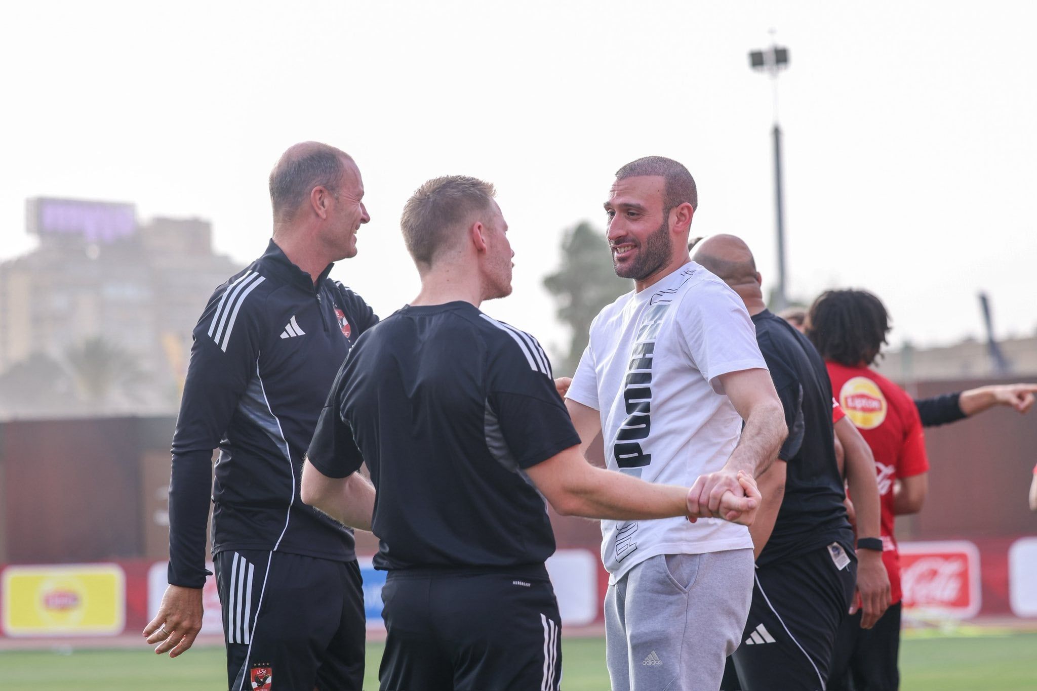 وأدى رباعي حراسة المرمى محمد الشناوي ومصطفى شوبير وحمزة علاء ومحمد سيحا تدريبات بدنية وفنية منفردة على هامش المران الجماعي.