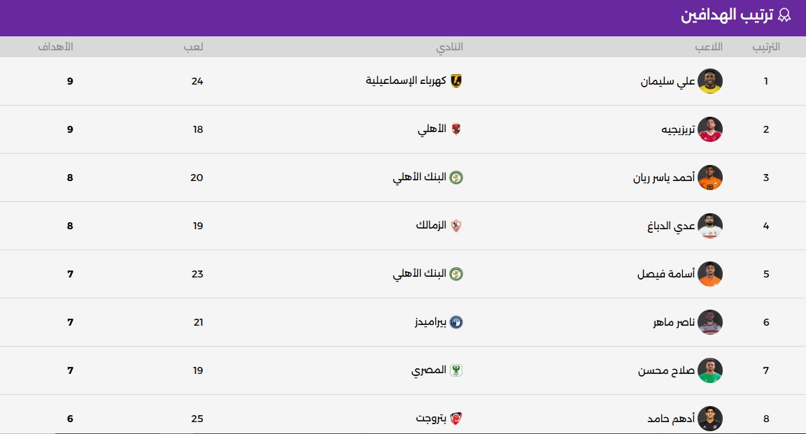 وجاء جدول ترتيب هدافي الدوري المصري كالتالي: