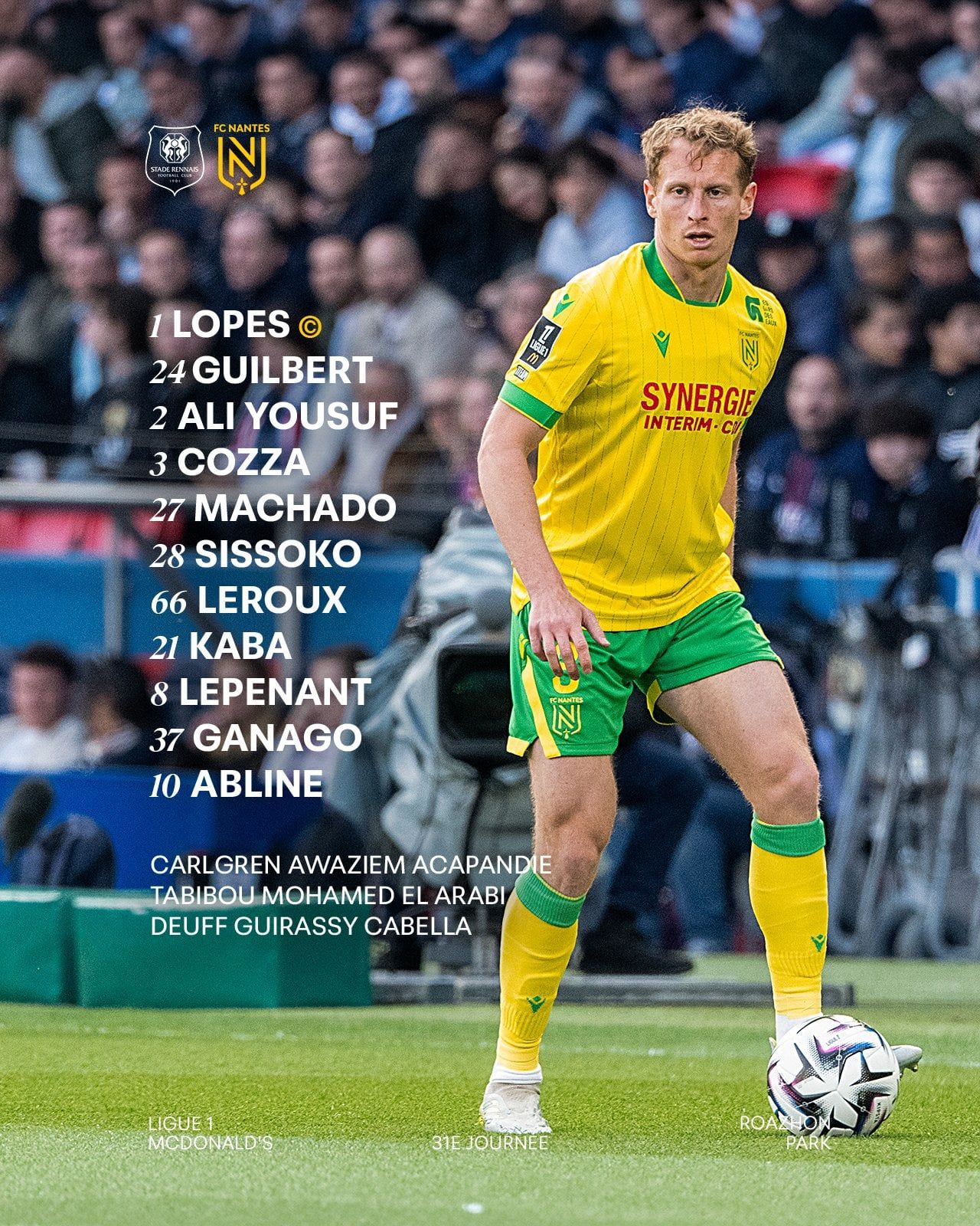 ويحتل رين المركز الخامس في جدول ترتيب الدوري الفرنسي برصيد 53 نقطة قبل إنطلاق منافسات الجولة، بينما يحتل نانت المركز الـ17 برصيد 20 نقطة.
