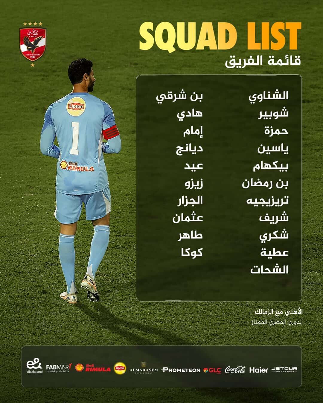 وجاءت قائمة الأهلى كالتالي..