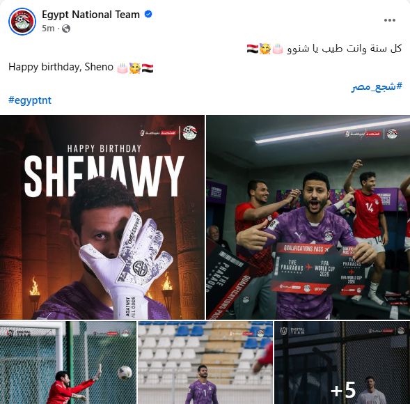 وكتبت صفحة المنتخب عبر حسابها على فيسبوك: "كل سنة وأنت طيب يا شنو".