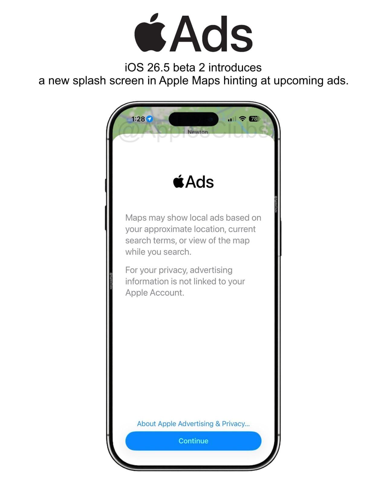 وجاء هذا الاكتشاف عبر حساب Apple Club على منصة X، حيث نشر صورة توضح واجهة جديدة تحمل اسم “Apple Ads”، مع إشارات صريحة إلى استخدام البيانات لعرض إعلانات محلية.