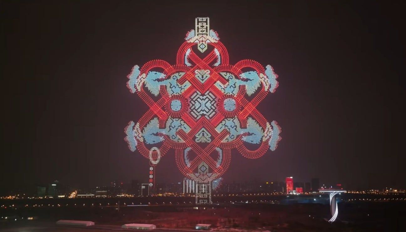 خلال العرض، تزينت السماء بأشكال متعددة، من بينها فوانيس صينية ثلاثية الأبعاد ومناظر حضرية وأنماط معقدة، فى مشهد يعكس التقدم التقنى فى هذا المجال، ورغم أن نحو 25 طائرة لم تتمكن من الإقلاع، فإن العدد المتبقى البالغ 22,580 طائرة كان كافيا لتسجيل رقم قياسى عالمى جديد فى موسوعة غينيس لأكبر عدد من الطائرات بدون طيار يتم تشغيلها فى وقت واحد.