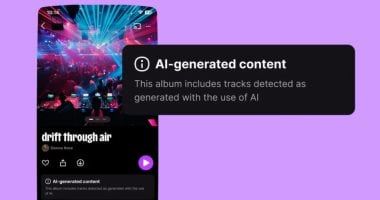أعلنت ديزر Deezer، منصة بث الموسيقى التي تتخذ من باريس مقرًا لها، أن 44% من الأغاني المُحمّلة يوميًا مُولّدة باستخدام الذكاء الاصطناعي، كما رصدت الشركة الفرنسية المستقلة ارتفاعًا في عدد الأغاني المُولّدة بالذكاء الاصطناعي المُحمّلة يوميًا من 10 آلاف إلى 75 ألف أغنية خلال ما يزيد قليلًا عن عام، ولاحظت ديزر أيضًا زيادة حادة في عمليات البث الاحتيالية لهذه الأغاني المُولّدة بالكامل بالذكاء الاصطناعي، والتي يُرجّح أنها تهدف إلى تحقيق أرباح غير مشروعة منها.