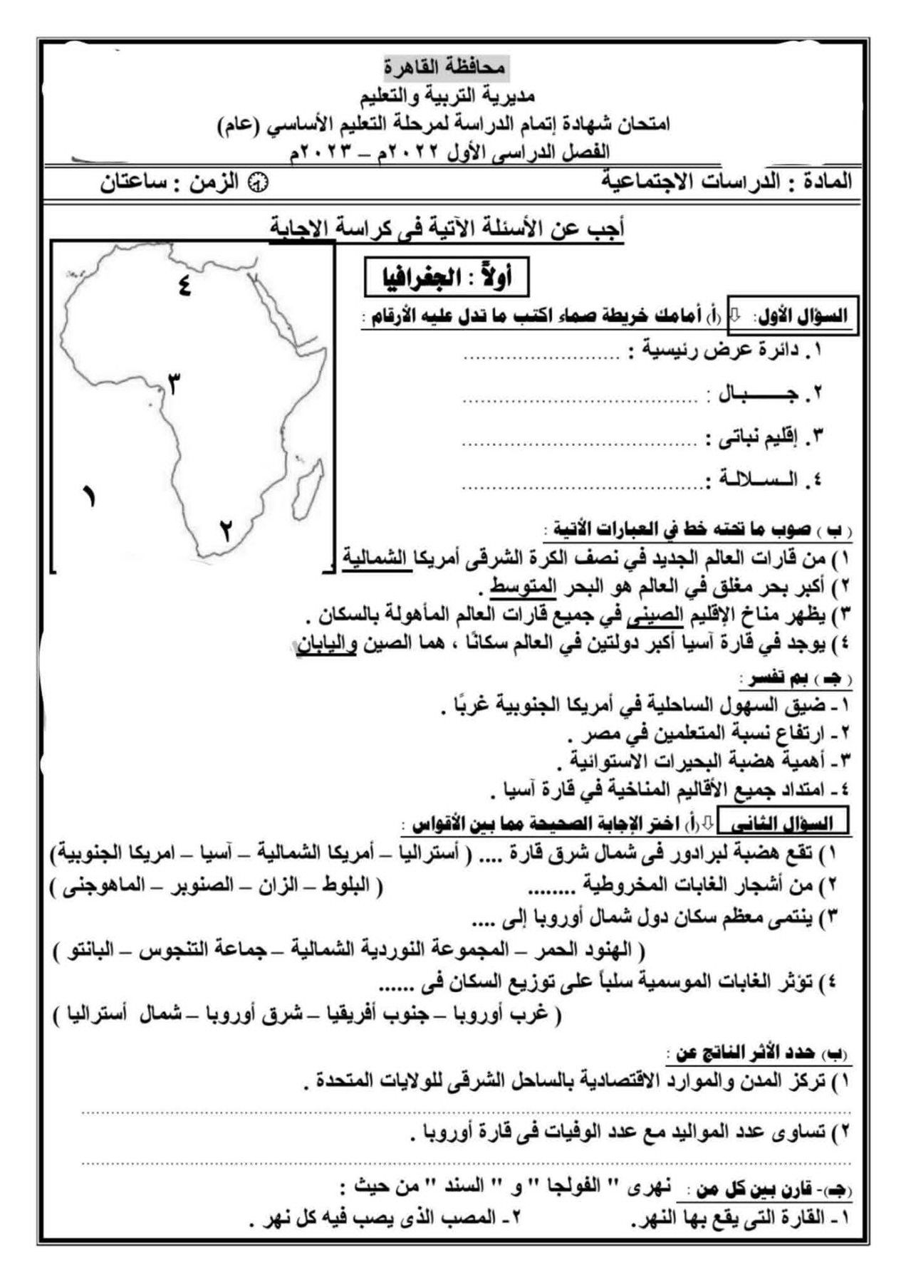 نماذج امتحانات الدراسات الاجتماعية للصف الثالث الإعدادي الترم الأول.. شكل الأسئلة ومواصفات الامتحان