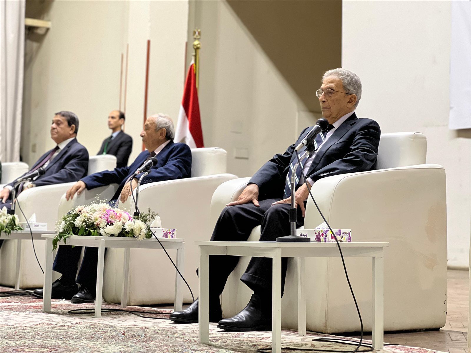 من جانبه عبّر عمرو موسى، عن سعادته بالمشاركة في احتفالية تكريم المهندس طارق النبراوي، مؤكدًا على أن النقابات المهنية تشكل عصبًا رئيسيًا في التقدم العربي وتقدم المشروع العربي نحو مستقبل أفضل، موضحًا أن المسئولية التي يتحملها المهندس طارق النبراوي مسئولية مهمة وضخمة، نظرًا لما يمر به العمل العربي المشترك من ضعف واضح، مشيرًا إلى أن المرحلة المقبلة تتطلب توسيع آفاق التعاون، خاصة مع القارة الإفريقية، مؤكدًا ضرورة الاتجاه نحو إفريقيا في المرحلة القادمة، إلى جانب التأكيد على أهمية الدور النقابي في بناء العلاقات الدولية، والدور المتنامي للمجتمع المدني الإقليمي والدولي، الذي أصبح فاعلا في التأثير على العلاقات الدولية واتخاذ المواقف السياسية.