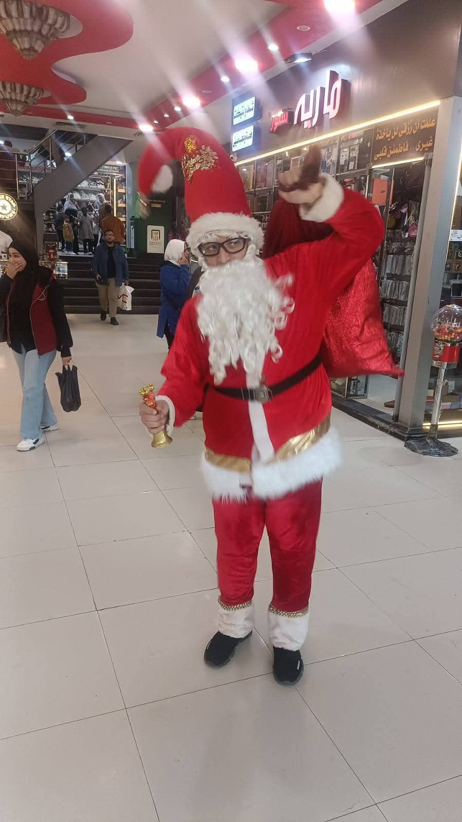 ويضيف أن ليلة رأس السنة الميلادية لها طابع خاص لديه، إذ يبدأ الاستعداد لها قبل أيام، بتجهيز زي بابا نويل والهدايا بمساندة زوجته التي تقف إلى جانبه، ثم يجوب الشوارع لتوزيع الهدايا على الأطفال والمواطنين، قبل أن يختتم الليلة بإحياء إحدى الحفلات التي تجمع الصغار والكبار في أجواء من الفرح والبهجة.