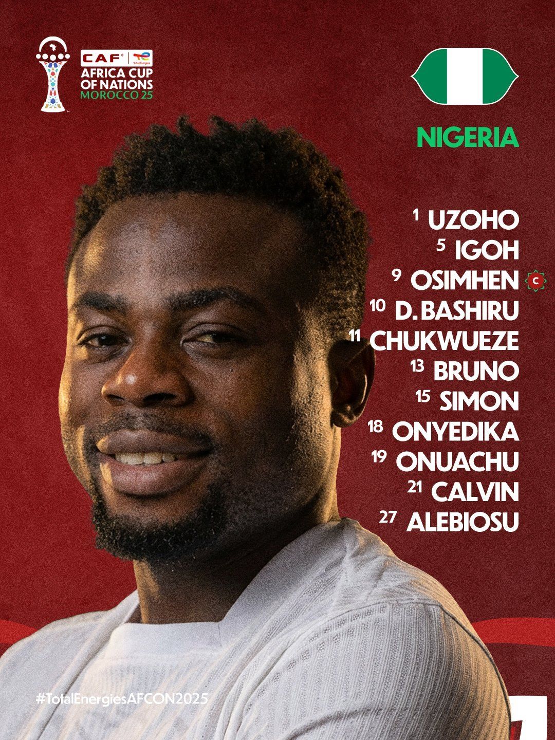 تشكيل نيجيريا الرسمي أمام أوغندا في كأس أمم أفريقيا 2025