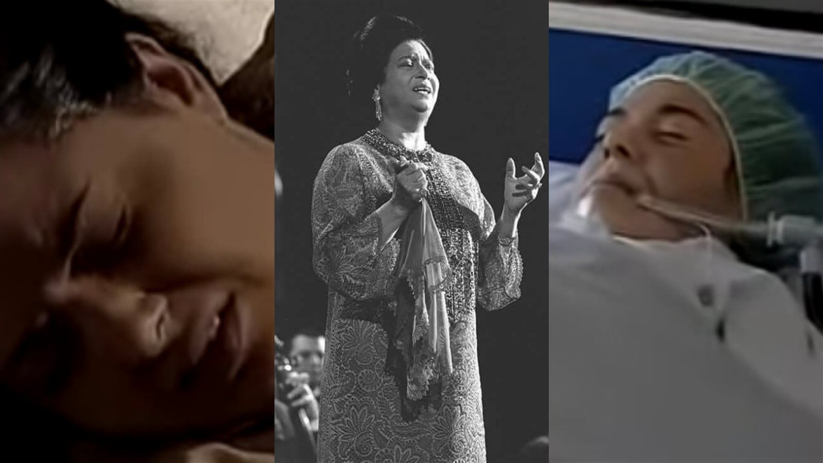 بعدها، جاءت مشاهد نقلها إلى المستشفى، حيث بدت أم كلثوم محاطة بالقلق والوجوه المتجهمة، الكاميرا ركزت على التفاصيل الصغيرة: نظرات الأطباء، صمت المحيطين بها، وأنفاسها المتقطعة، إلى أن دخلت في غيبوبة كاملة حتى وفاتها، هنا، بلغ المسلسل ذروته الدرامية، مقدّمًا النهاية دون خطاب مباشر أو تعليق، مكتفيًا بصورة الجسد الساكن لصوت هزّ وجدان أمة كاملة.